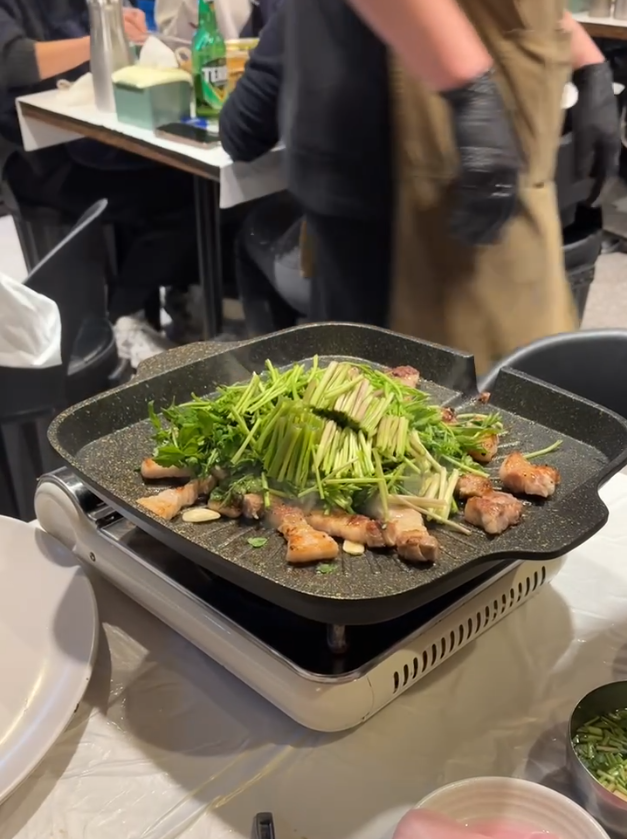 サムギョプサルは言うまでもなく、お肉の油にセリがばっちりあって絶品です。